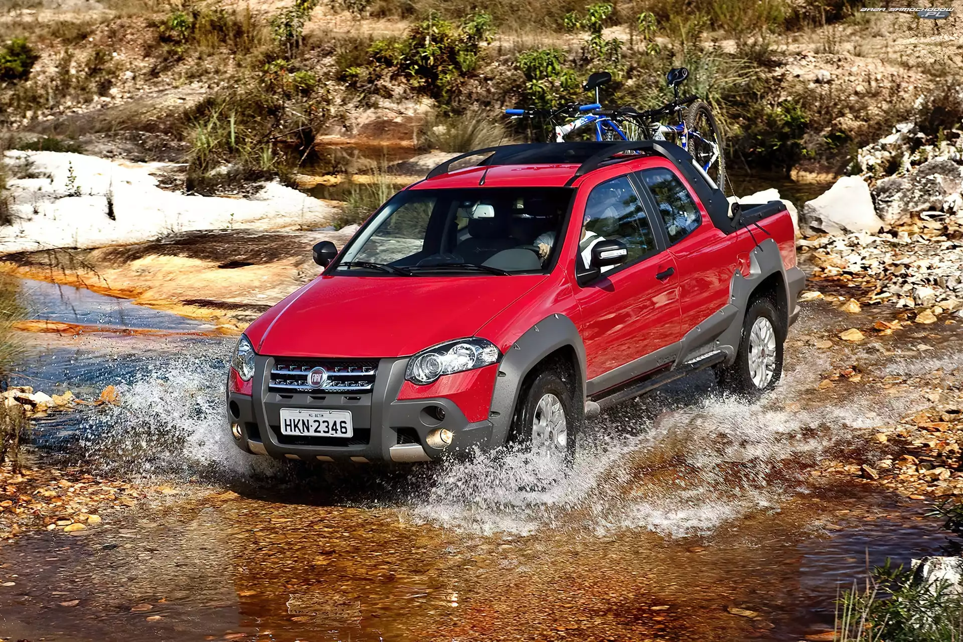 Offroad, Przeprawa, Fiat Strada SUV, Fiat Strada, Pakiet Pasażerska, Fiat Strada, Przestrzeń Paka, Tył, Fiat Strada Profil, Dokładka, Lewy, Fiat Strada Up, Fiat Strada, Pick Up, Fiat, Pick Terenowe, Fiat Strada, Zawieszenie Strada Fiat Strada, Sporting Progi, Zapasowe, Fiat Strada, Koło Fiat Strada, Paki, Biały, Klapa Working, Użytkowy, Fiat Strada Widok, Góry, Fiat Strada, Z