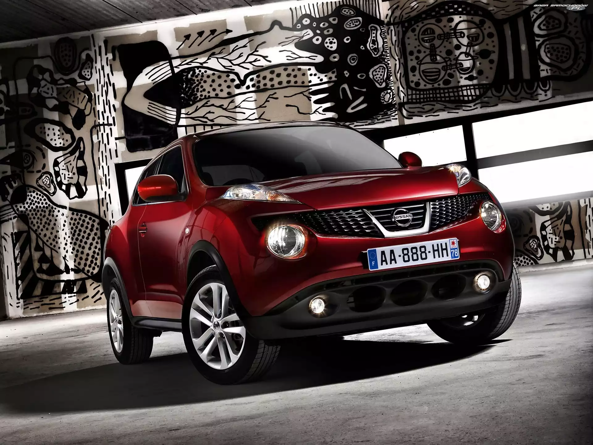 Crossover, Nissan, Juke Juke, Samochód, Nissan Futurystyczna, Nadwozia, Nissan Juke, Linia Nissan Juke II, Przód, Czerwony, Druga generacja Nissan, Juke, Graffiti, Reflektory Nissan Juke, Czerwony Juke