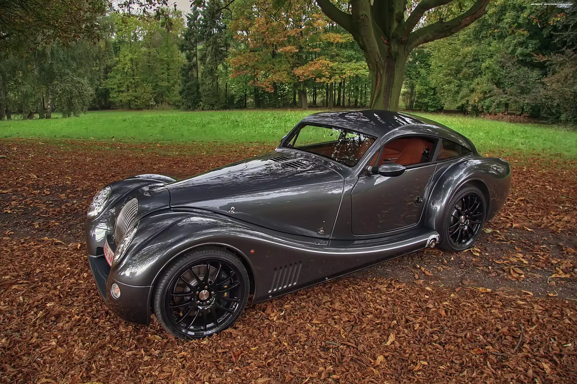 Liście, Morgan Aero 8, Park- Zdjęcia samochodów